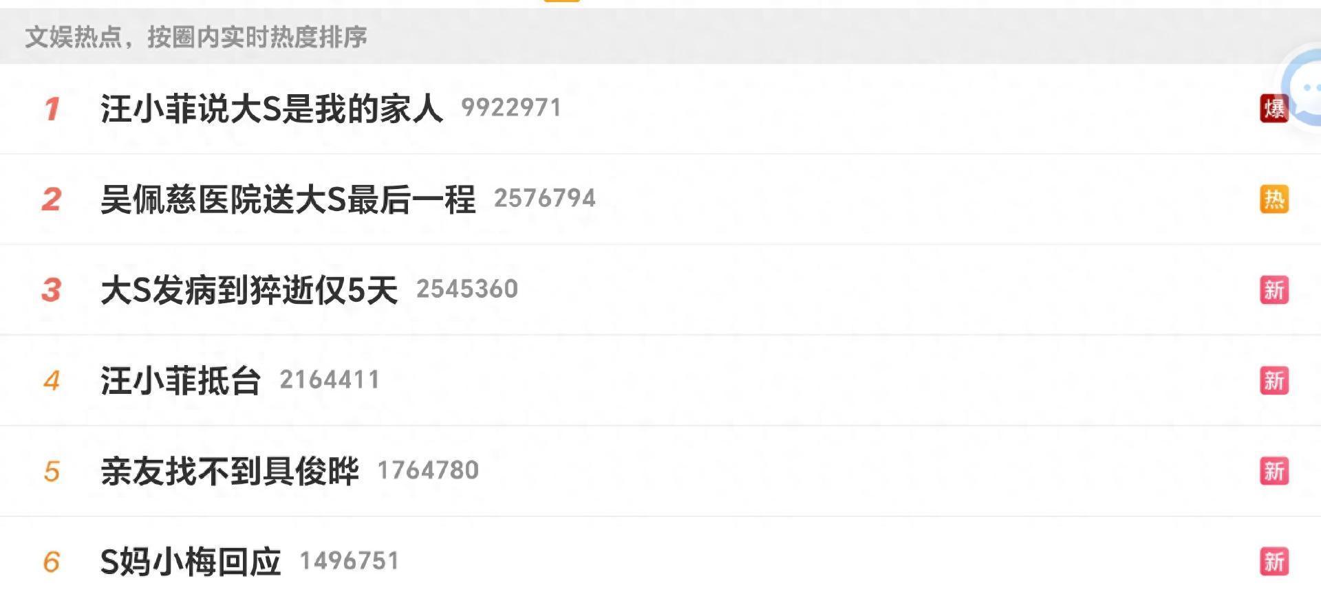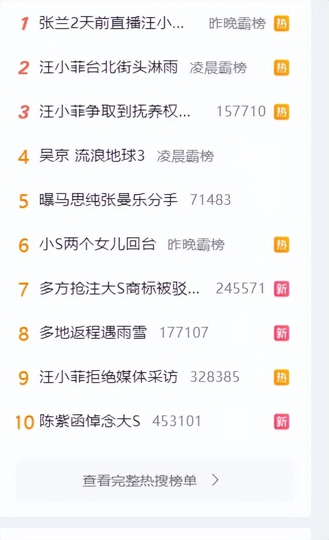 大S去世本是一件悲痛的事情,汪小菲连上热搜,热度已经超过了事件本身,网友也不禁感叹娱乐圈的现实。