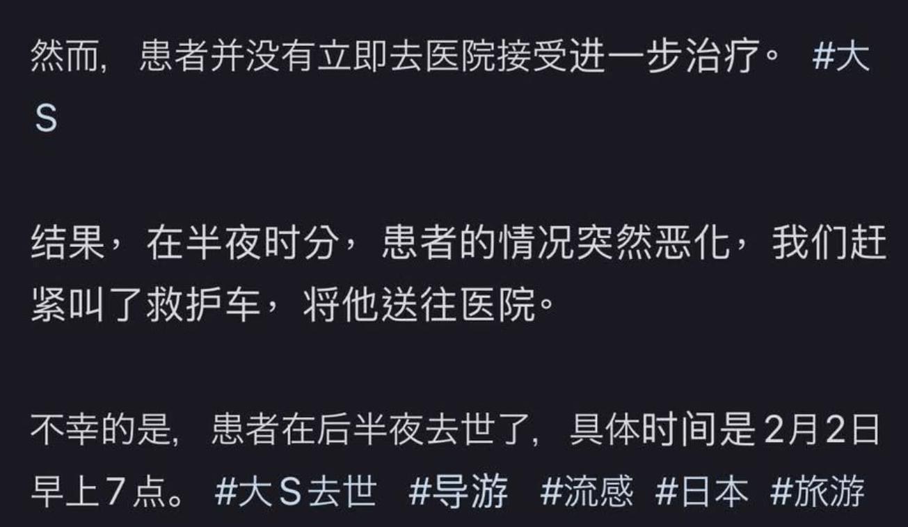 其实昨天早上9点多刷到“大S去世”这个词条,还以为是网传消息,毕竟这种娱乐圈谣言并不少见。